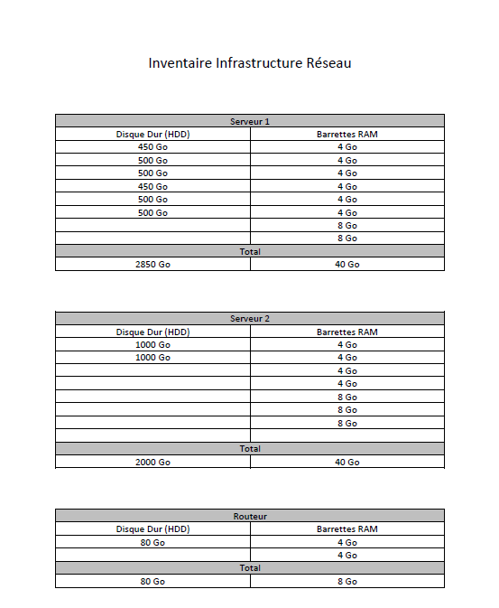 Inventaire baie informatique