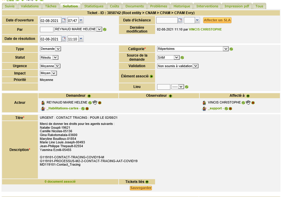 Ci-dessous quelques exemples de tickets résolus N1 et N2 :